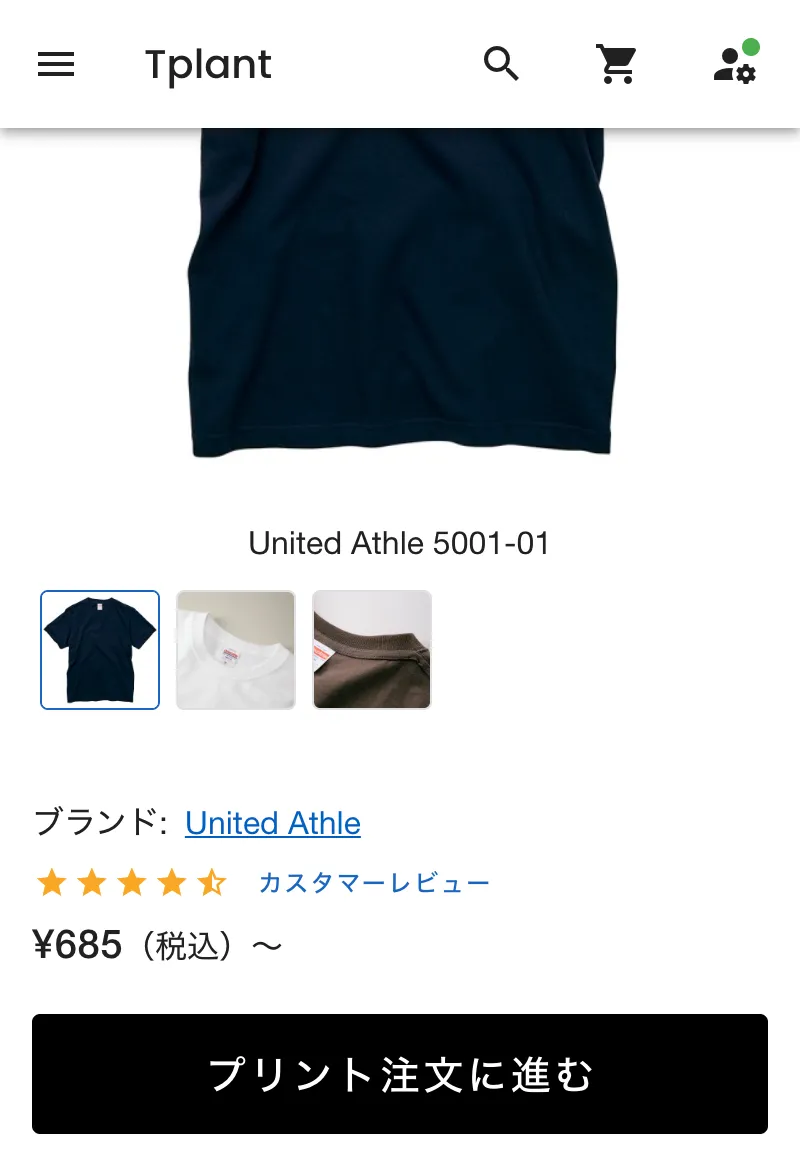 商品詳細ページが開きましたら、「プリント注文に進む」ボタンを押下し、プリント注文ページに進んでください。
