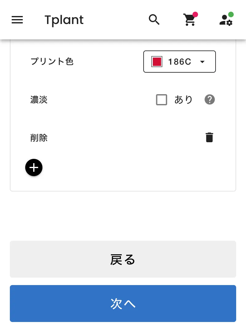 下記の手順でプリント方法、カラー、サイズ、数量を決定します。