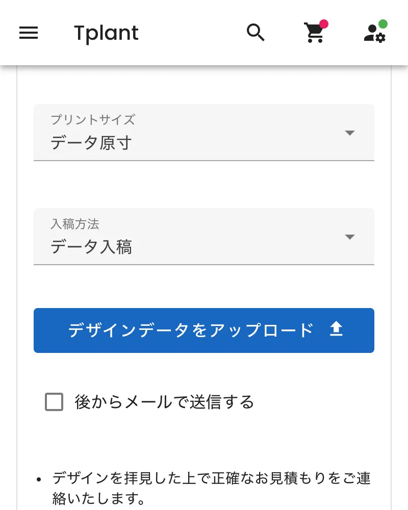 - デザインデータをアップロード